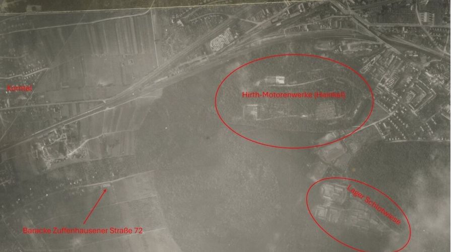3000 Zwangsarbeiterinnen und Zwangsarbeiter lebten zeitweise während des Nationalsozialismus auf der Schlotwiese zwischen Zuffenhausen und Feuerbach. Am 21. Juli 1944 kamen über 30 Zwangsarbeiter bei einem Bombenangriff der Alliierten in dem Lager ums Leben. Der Angriff hätte eigentlich dem Hirth-Flugzeugmotorenwerke (Heinkel) gelten sollen.