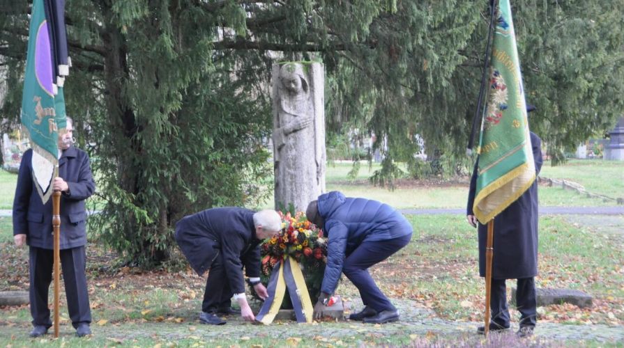 Begleitet von Musikdarbietungen des Musikvereins Zuffenhausen ging es im Anschluss in einer gemeinsamen Prozession zum Friedhof Zuffenhausen zur feierlichen Kranzniederlegung und Schweigeminute.