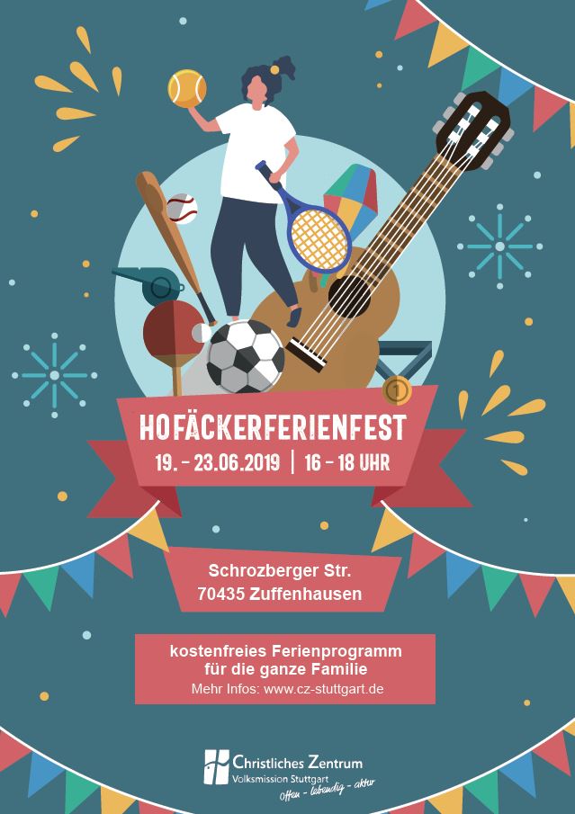 Auch in diesem Jahr gibt es in den Pfingstferien wieder ein Fest für die ganze Familie. Gemeinsam wird das Leben gefeiert! Spaßige Spiele, frische Musik, coole Stories, leckeres Essen, ein Eltern-Cafe und jede Menge Aktionen auf der Hofäckerwiese stehen auf dem Programm.