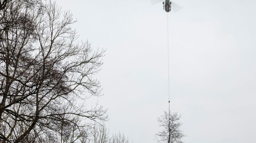 Hubschrauber unterstützt bei Baumpflegemaßnahmen