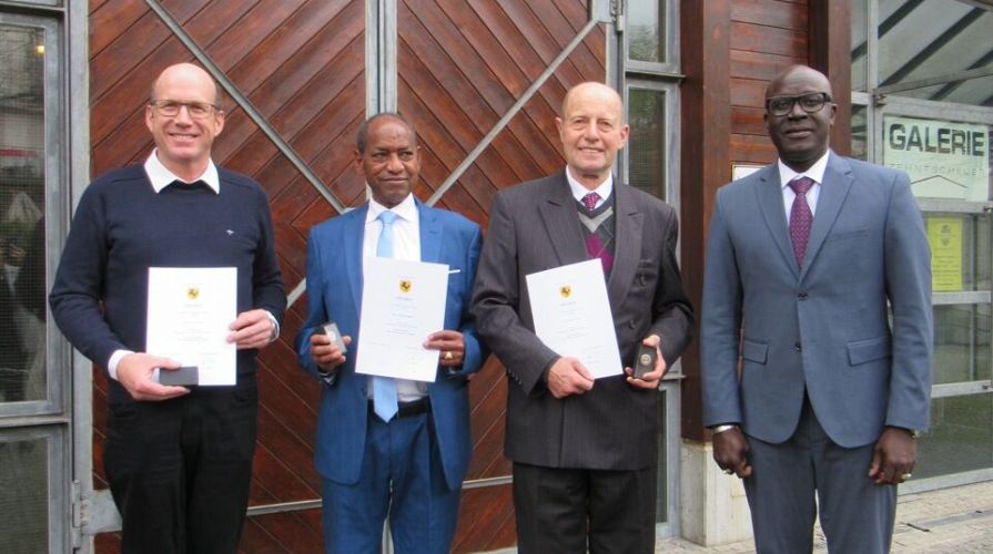 Foto oben: V.l.: Martin Schaaf (der die Urkunde für seine Tochter Hanna Schaaf entgegennahm, die aus gesundheitlichen Gründen nicht persönlich erscheinen konnte), Ghirmai Tesfaldet, Wilfried Seyfang und Bezirksvorsteher Saliou Gueye. Foto: Stadtbezirk Zuffenhausen