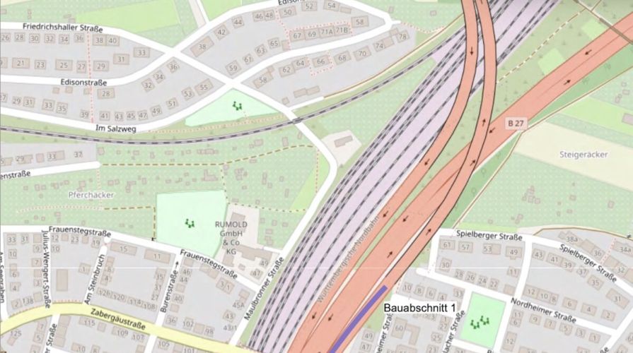 Die Fahrbahn der B 10/B 27 muss daher ab dem Kreuzungsbereich Friedrichswahl (Heilbronner Straße / Ludwigsburger Straße) in Fahrtrichtung A 81/Ludwigsburg voll gesperrt werden. Die Gegenrichtung ist von den Arbeiten nicht betroffen.
