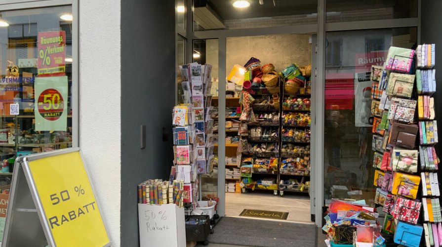 Alle Karten aus Deutscher und Schweizer Produkt . Es stehen 2 Ständer vor dem Laden und weitere 18 Ständer im Laden.